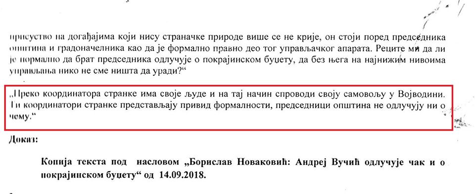 Andrej Vučić je stvarni i faktički donosilac svih bitnih odluka i kreator političkih procesa u Novom Sadu i Vojvodini.