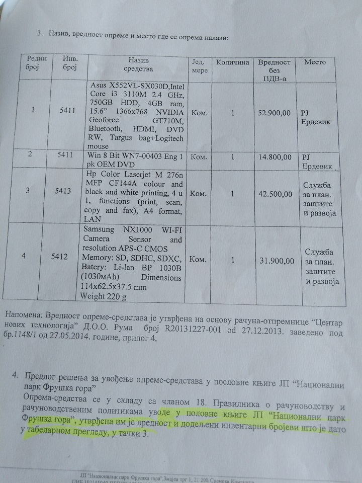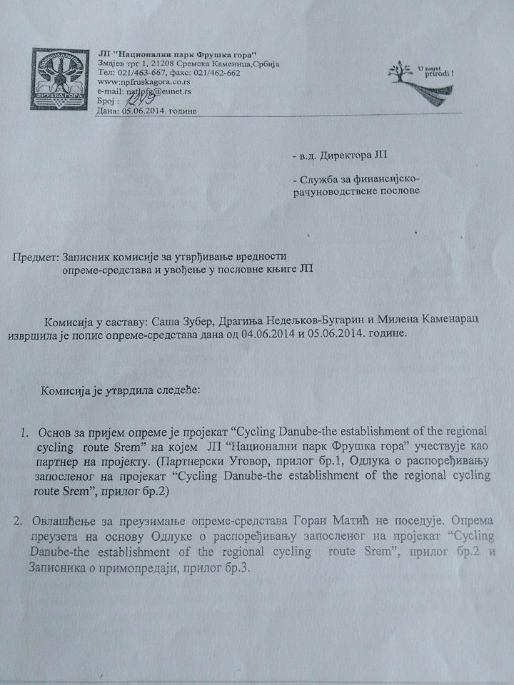Po završetku tog partnerskog projekta koji je ispred JPNPFG vodio Goran Matić, oprema iz projekta je trebalo da bude uvedena u knjige JPNPFG kao osnovno sredstvo. U pitanju je komjuter, štampač, kamera, DVD, ukupne vrednosti 142.100 din. Na osnovu dopisa Sremske privredne komore od 22.05.2014. ustanovljeno je da oprema nije zaprimljena u JPNPFG i da se ona nalazi u privatnom posedu kod Gorana Matića.