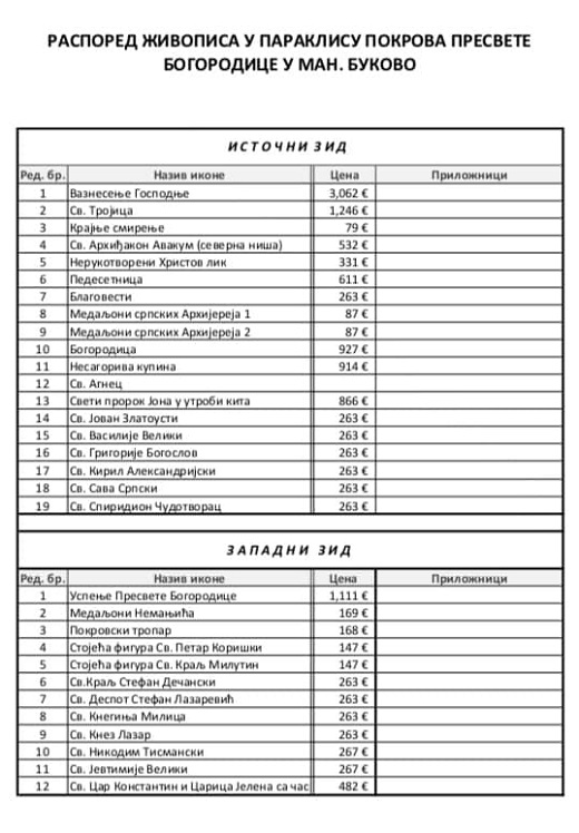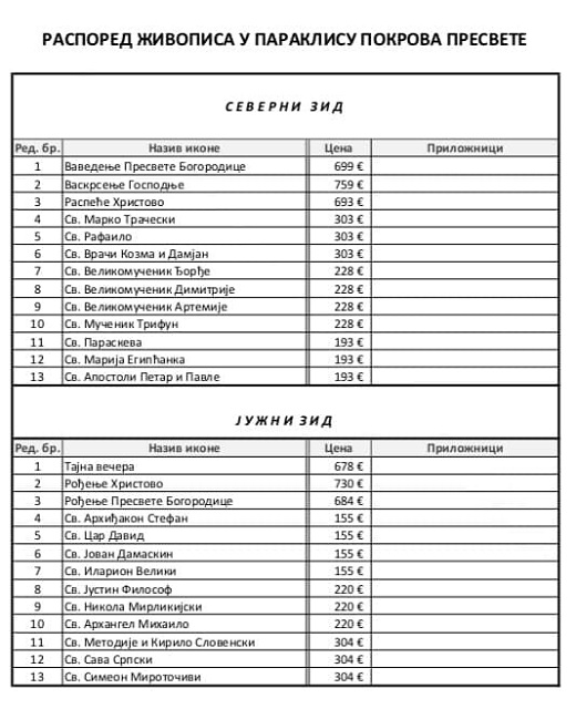 Prilozi se daju u freskama koje pojedinac ili porodica izabere i uplati njenu vrednost. Biće upriličena i spomen ploča sa imenima svih darodavaca, kaže su u saopštenju “Udruženja Dijaspora istočne Srbije”.