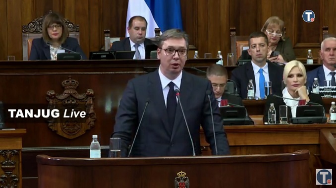 Predsednik Srbije Aleksandar Vučić rekao je u Skupštini Srbije da je naredio punu borbenu gotovost. On je kazao da je su u današnjoj akciji kosovske policije na severu Kosova uhapšene 23 osobe.
