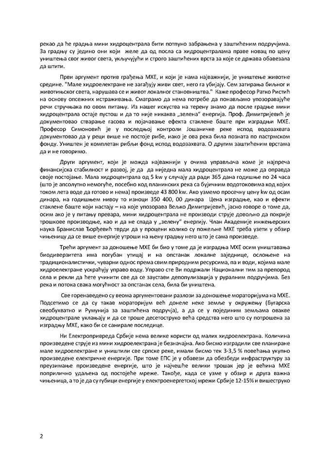 “U svetlu klimatskih promena i borbe ljudi na svim kontinentima da zaustave poguban uticaj čoveka na prirodu, imamo potrebu da Vas obavestimo o situaciji koja se tiče otporu prema građenju mini hidrocentrala u Srbiji. Mnogo razloga je da se takvi štetni projekti zaustave.