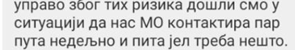 Da to što je ranije koketirao sa opozicijom je dovelo do toga da, kako kaže u prepisci Milosavljević, “da nas Ministarstvo odbrane kontaktira par puta nedeljno i pita jel treba nešto,”