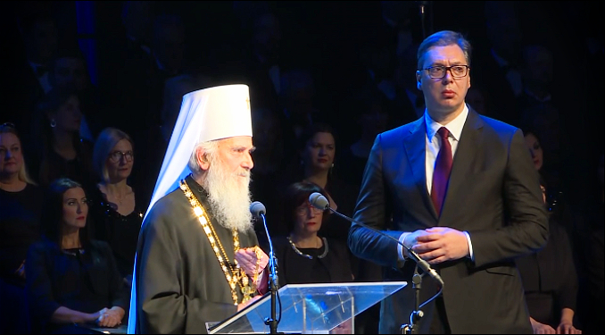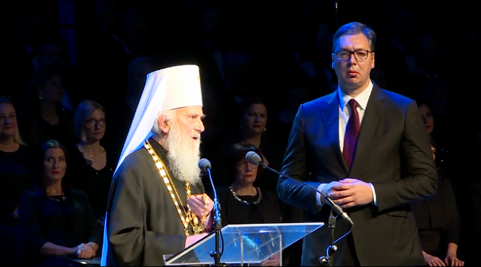 Želim da Srbija bude večna, rekao je Vučić, koji je dodao da ništa večeras ne bi rekao da patrijarh nije dobio poruke o njemu od onih koji su učestvovali u deljenju i razgraničenju duha na srpski i srbijanski.