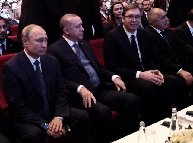 Na svečanosti, Erdogan je sedeo između Putina sa desne strane i Vučića sa leve, dok je Borisov sedeo do Vučića.
