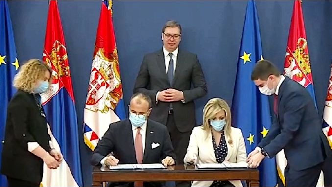 Ceremoniju potpisivanja putem video-linka pratio je i evropski komesar za susedstvo i proširenje Oliver Varhelji.