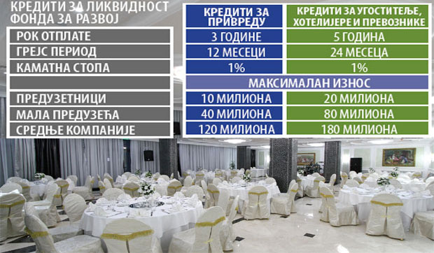 – Kamatna stopa je jedan odsto na godišnjem nivou, a sredstva se odobravaju i vraćaju u dinarima – ističe Stanić. – Maksimalan iznos kredita za preduzetnike i mikropreduzeća je udvostručen i biće do 20 miliona dinara, a za mala do 80 miliona dinara. Srednje firme će moći da konkurišu za sredstva do 180 miliona dinara. Maksimalni iznosi i uslovi obezbeđenja dodatno su prilagođeni vrsti preduzeća.