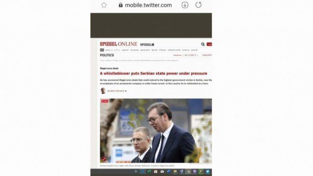 “Veoma je verovatno da su vlasti Srbije, uključujući predsednika, umešali prste u ilegalne dogovore o trgovini oružjem, ali to u veoma malom broju slučajeva može da bude dokazano na sudu. U slučaju Krušika je drugačije. Obradović je gotovo u potpunosti dokumentovao korupcionašku praksu te kompanije. U Srbiji to mnogi slave kao simbol otpora moćnoj srpskoj ‘državnoj mafiji'”, piše nemački nedeljnik.
