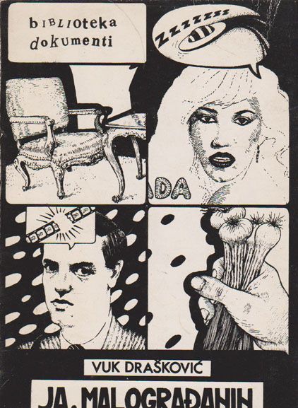 Drugarice i drugovi, dame i gospodo, Gospode, zaista me srce boli što jedini primerak te Vukove zakletve mrtvom Titu i umirućem Savezu komunista Jugoslavije nekom poklonismo posle dužeg smehotresa! Smejali smo se autističnoj lujki od ,,književnika“ V. Draškoviću. Kasnije žalost bi ogromna, jer ne fotokopirasmo primerak. Da smo i nekoliko komada imali, bili bi pokloni! Zahvaljujući knjižuljku ,,Ja, malograđanin“ ,,kralja trgova“ gledali smo kasnije uz solidnu distancu ali prisutni na njegovim mitinzima.