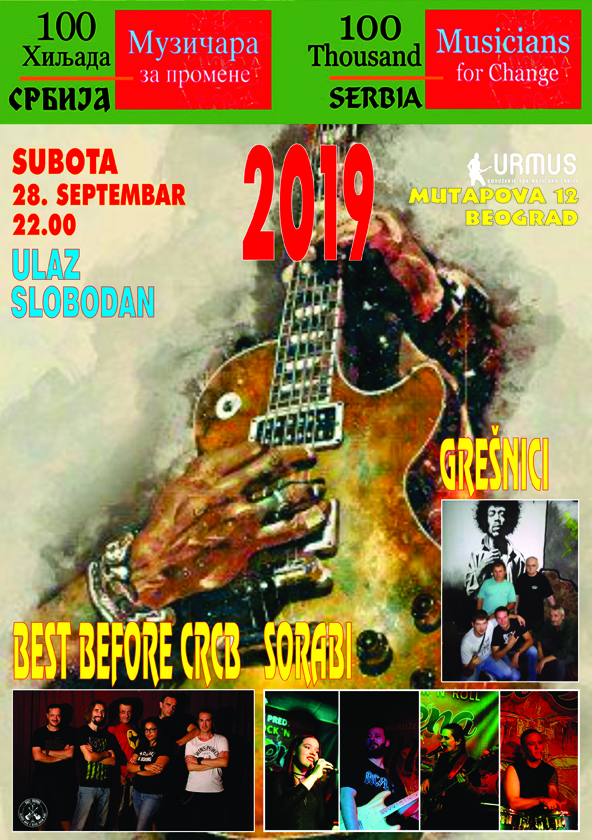 I ove godine, osmi put, održaće se srpski koncert povodom velike svetske akcije ,,Sto hiljada muzičara za promene”, u organizaciji Udruženja rok muzičara Srbije na istom mestu – u dobro poznatom Urmusovom klubu u Beogradu, Mutapova 12.