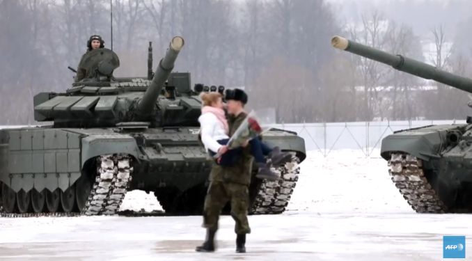 Rusko Ministarstvo odbrane je prikazalo fotografije na kojima je 16 tenkova T-72B3 poređano u obliku srca na snegu na vojnom poligonu Alabino kod Moskve.