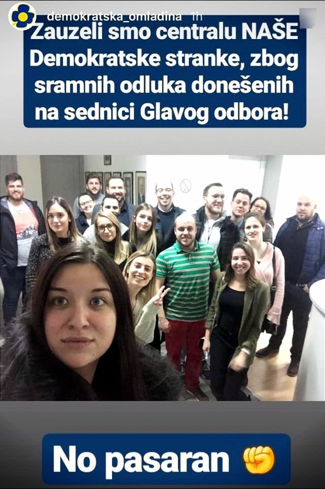 Raspušteni Gradski odbor DS Beograd i Demokratska omladina. Deo članova napustio sednicu