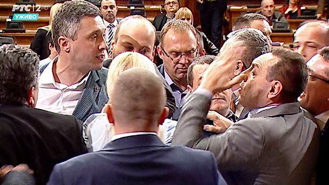 Obradović i Kostić sukobili su se sa šefom poslanika naprednjaka Aleksandrom Martinovićem, nakon čega je nastao opšti metež.