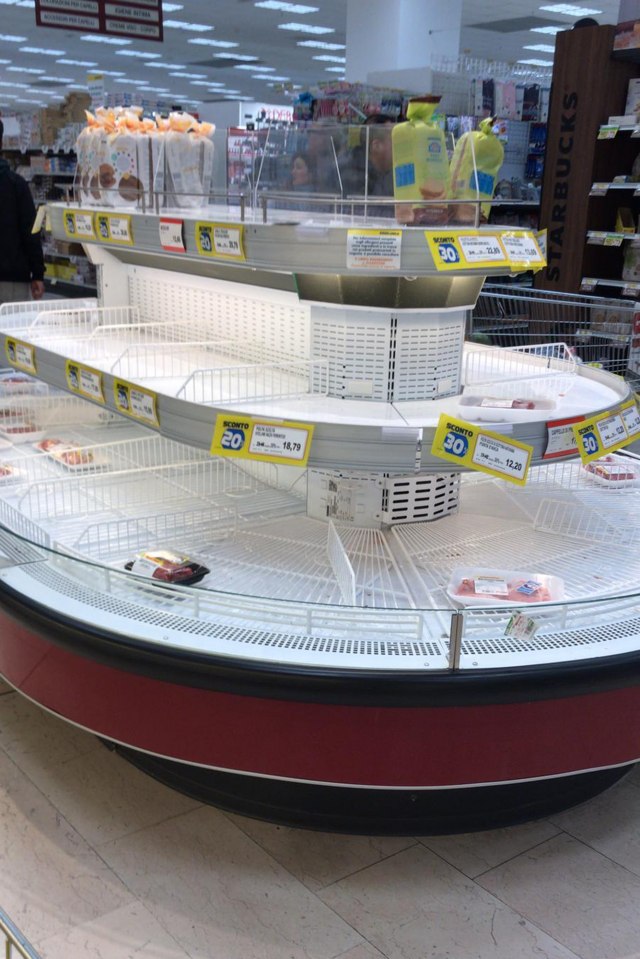 Poluprazne su police marketa u Paviji, univerzitetskom gradiću od nekih 40.000 stanovnika, udaljenom od Milana 40 kilometara.