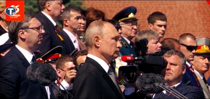 Paradi su prisustvovali i predstavnici delegacija iz brojnih zemalja, među kojima je i predsednik Srbije Aleksandar Vučić. On je danas, uoči početka Vojne parade u Moskvi, stigao u Kremlj, gde ga je dočekao predsednik Rusije Vladimir Putin.